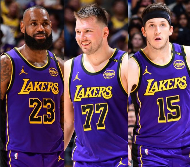 相較于前兩名的“實至名歸”,湖人三人組(詹姆斯、東契奇、里夫斯)位列第三的排名,卻引發(fā)了不少質疑。美媒給出的理由很簡單:詹姆斯與東契奇兩位超巨的組合,理論上具備“統治級”的實力。東契奇今夏成功減重,在歐錦賽上場均轟下26.8分7.5籃板6.3助攻,競技狀態(tài)已調整至最佳;而詹姆斯雖已40歲,但上賽季仍能交出25.4分7.9籃板7.2助攻的數據,經驗與關鍵球能力依舊頂尖。然而,現實卻給這份排名潑了冷水——根據Shams的報道,詹姆斯因小腿傷勢至少缺陣3-4周,新賽季開局階段無法登場;更嚴峻的是,隨著年齡增長,詹姆斯早已無法保持“全勤+高強度輸出”,上賽季他僅出戰(zhàn)55場,場均出場時間降至33.9分鐘,這意味著湖人在漫長賽季中,很難依賴他“打滿全場”。