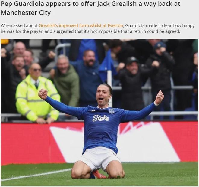 瓜迪奧拉在曼城對(duì)埃弗頓的賽前新聞發(fā)布會(huì)上暗示,格拉利什未來(lái)有可能重返俱樂(lè)部。