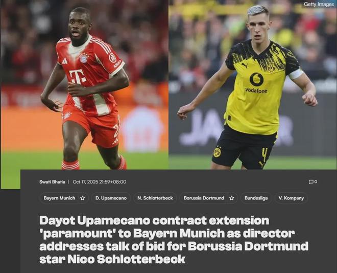 在拜仁對(duì)多特蒙德的大戰(zhàn)之前,拜仁總監(jiān)艾貝爾回應(yīng)了他們和多特中衛(wèi)施洛特貝克的傳聞,不過(guò)他表示拜仁的首要目標(biāo)是續(xù)約留住烏帕梅卡諾。