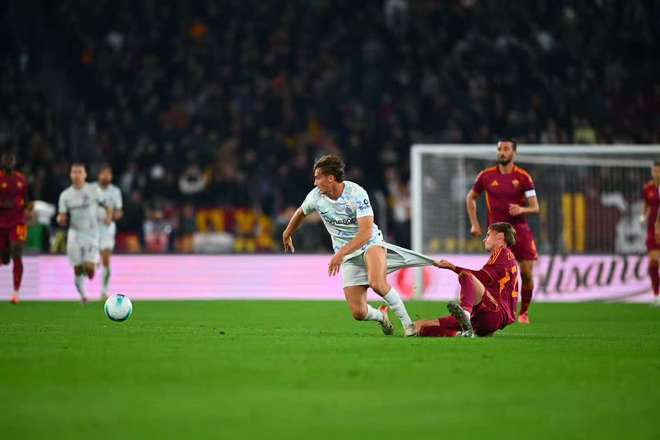 本場(chǎng)比賽,博尼并沒有在前場(chǎng)打出大殺四方的水平,甚至很長(zhǎng)時(shí)間都很難完成一腳像樣的觸球。但博尼在勞塔羅身邊學(xué)習(xí)到了勤勉和堅(jiān)決,兩個(gè)人不停地與對(duì)手纏斗,完成了對(duì)羅馬整條后防線的消耗。
