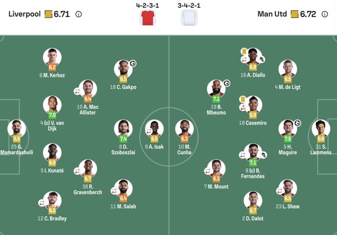 曼聯(lián)(3421):31-拉門(mén)斯;4-德里赫特,5-馬奎爾,23-盧克肖(85’15-約羅);16-迪亞洛(58’13-多古),18-卡塞米羅(58’25-烏加特),8-B費(fèi)(85’37-梅努0,2-達(dá)洛特;19-姆伯莫,10-庫(kù)尼亞;7-芒特(61’30-謝什科)
