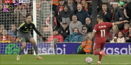 第50分鐘,薩拉赫傳中,加克波禁區(qū)左側(cè)停球,右腳爆射擊中立柱彈出!