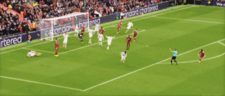 第14分鐘,薩拉赫任意球傳入禁區(qū),范迪克頭球攻門(mén)頂偏。